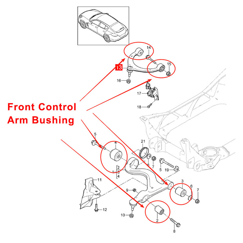 Porsche Panamera 2014–2016 Комплект втулок переднього верхнього та нижнього важеля керування